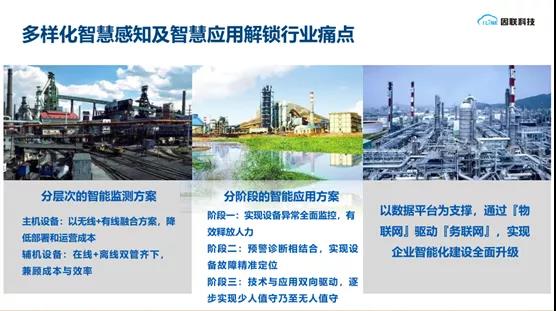 首先,分層次智能監(jiān)測(cè)方案。對(duì)于關(guān)鍵性、重資產(chǎn)的主機(jī)設(shè)備,將以無(wú)線+有線融合方案,降低部署和運(yùn)營(yíng)成本。而對(duì)于時(shí)常出故障且成本低、較分散的輔機(jī)設(shè)備,則采用在線+離線雙管齊下的監(jiān)測(cè)診斷方式,兼顧成本與效率。